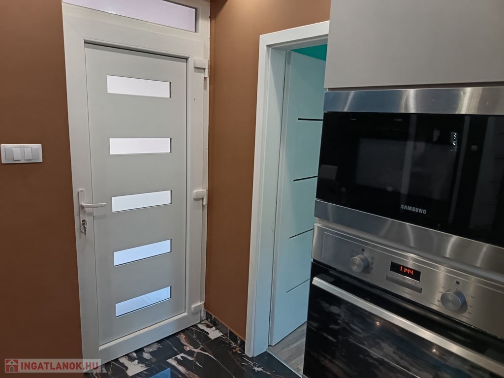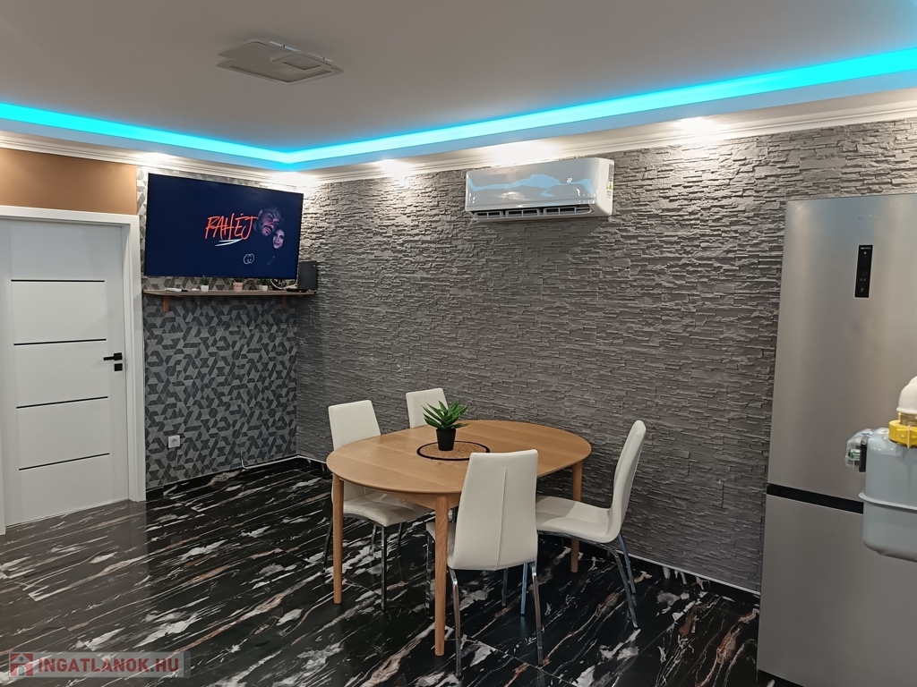 Az ingatlan felszereltsége minden igényt kielégít: a gépesített, beépített konyhabútor a vételár részét képezi, a fűtést egyedi gázkazán biztosítja, emellett hűtő-fűtő klíma is gondoskodik a komfortos hőmérsékletről. A nyílászárók korszerű műanyag ablakok, redőnnyel felszerelve.