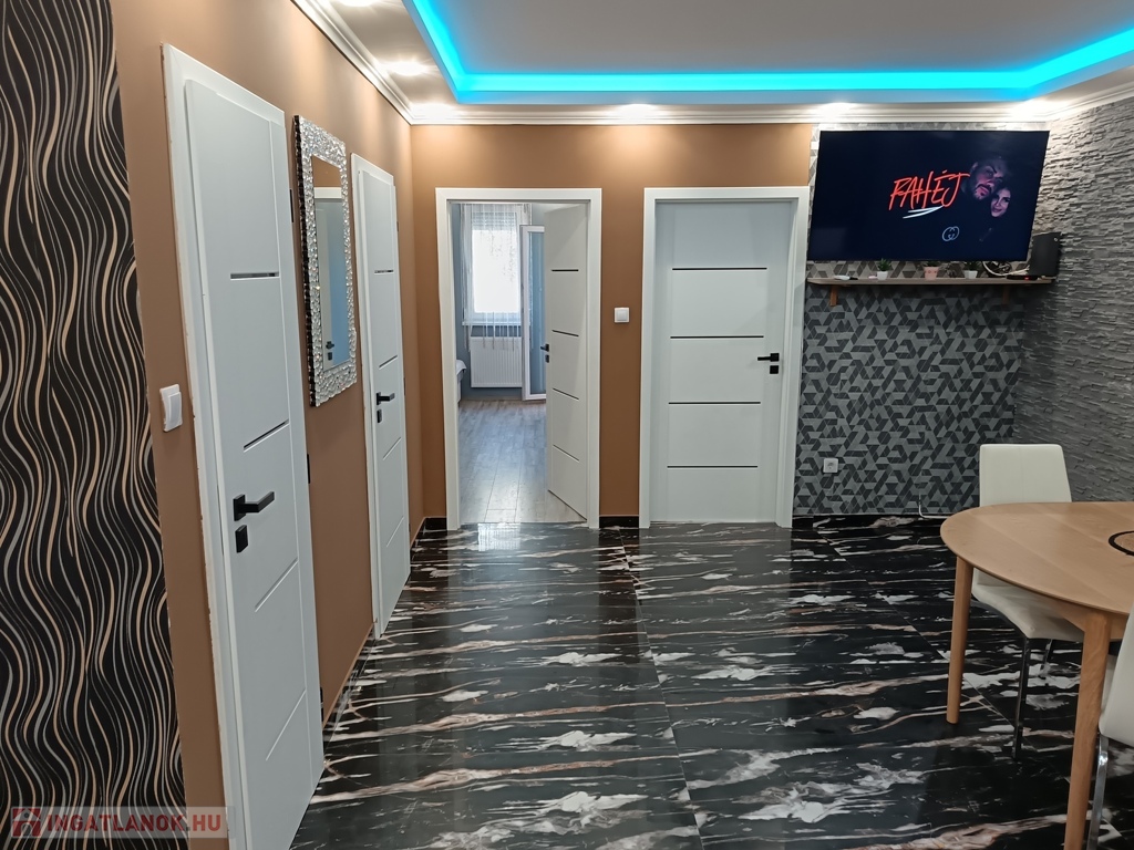 A lakás elosztása átgondolt és praktikus: amerikai konyhával és étkezővel, három külön nyíló szoba, fürdőszoba és külön WC áll rendelkezésre, ami családok számára is kényelmes megoldást kínál. A lakás egyik kiemelkedő előnye a nagy erkély, amely nyugodt pihenést kínál a mindennapokban.