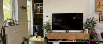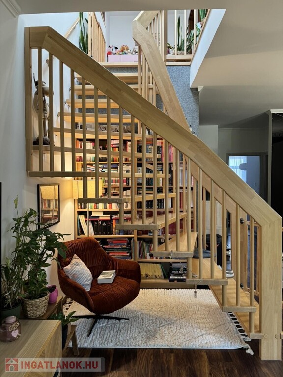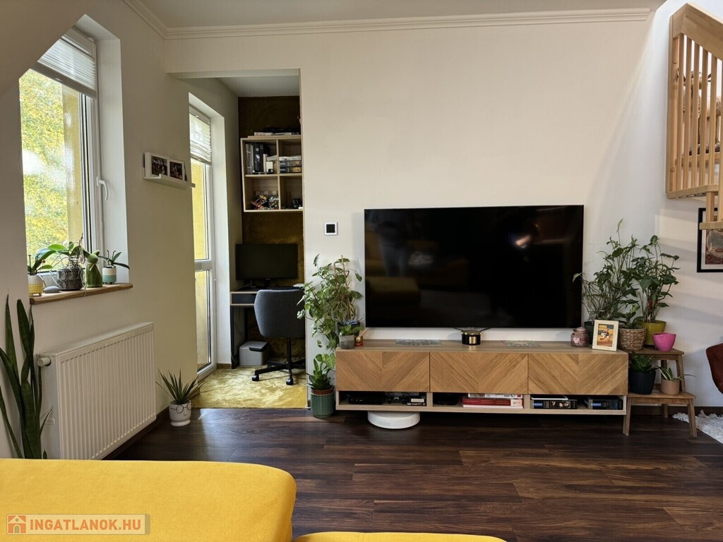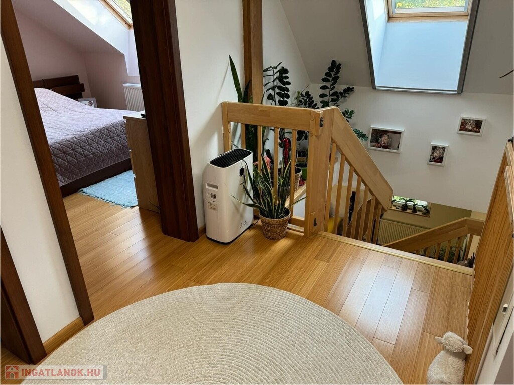 Alsó szint: amerikai konyhás nappali + dolgozósarok, szoba, fürdőszoba, külön WC