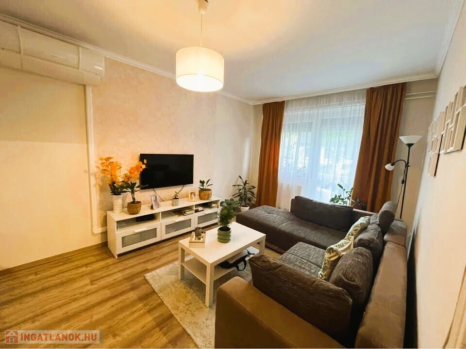 Tégla építésű társasház 3. emeletén található, egyedi gáz fűtéses új kondenzációs gázkazánnal, klimatizált, redőnnyel szerelt műanyag nyílászárós, laminált padló, vynil padló, járólap burkolatú.