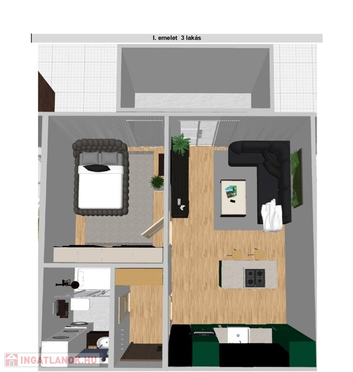 43,61 m², nappali + 1 szoba, 5,7 m² erkély – 46,46 M Ft