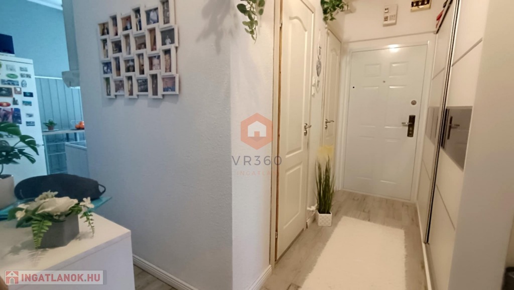 A lakásban a szobák laminált padlóval borítottak, küszöb nélküli belső modern nyílászáros. A konyha, előszoba, fürdő és Wc prémium kerámia lappal borított.