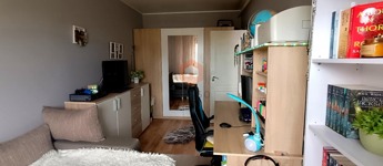 -déli tájolású, nagy méretű, világos, napfényes erkélyes nappali.