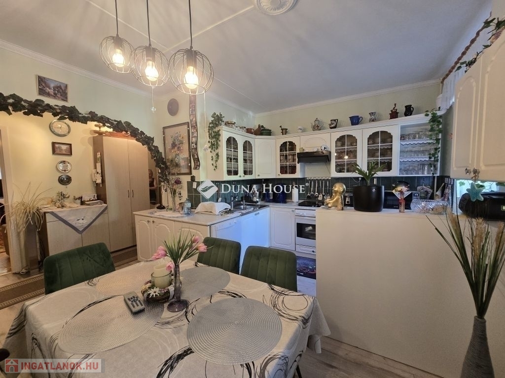 Eladó 74 m2-es, földszinti, kertkapcsolatos lakás kertvárosi környezetben!Eladásra kínálunk a Nagy Imre úton egy 74 m²-es, jó állapotú, földszinti lakást egy négyemeletes, szigetelt panelépületben. Az eredetileg 3,5 szobás elrendezés modern igényekre lett átalakítva: tágas konyha-étkező és három külön nyíló hálószoba várja új tulajdonosát.A lakáshoz tartozik egy különleges adottság: az önkormányzattal kötött használati megállapodás alapján egy kerítéssel körbevett zöld terület, virágos kert is a tulajdonos kényelmét szolgálja. A gondozott kertben hintaszék, kerti asztal és székek is helyet kaptak így a lakás valódi kertkapcsolatos otthon érzetét nyújtja.Főbb jellemzők:-műanyag nyílászárók (redőnnyel, szúnyoghálóval),-klímaberendezés,-részben cserélt beltéri ajtók,-rendezett, csendes lakóközösség,-nagy tároló ketten osztozva-kertkapcsolat-jó közlekedés, kertvárosi, nyugodt környezet.Az ingatlan tehermentes a kiköltözés picit hosszabb időt igényel. A lépcsőház tiszta ,rendezett a lakóközösség kiváló!Ez az ingatlan ideális választás családoknak vagy bárkinek, aki a kényelmes lakás előnyeit szeretné ötvözni a saját kert nyugalmával.További kérdéseivel és személyes megtekintésért várom hívását!