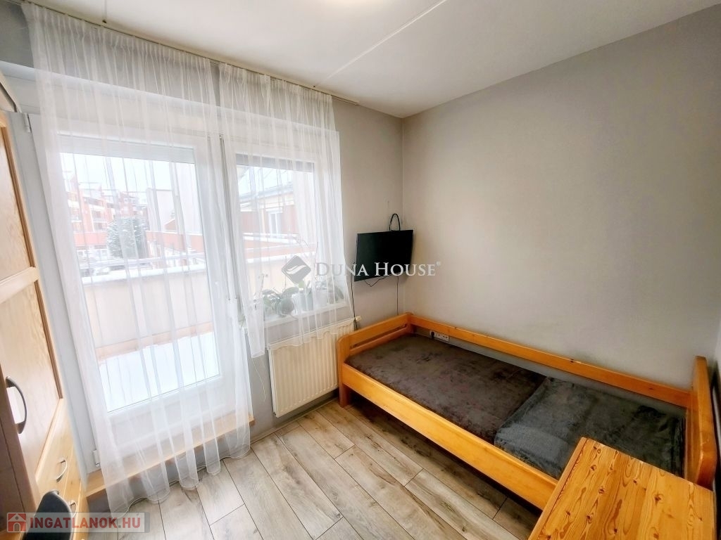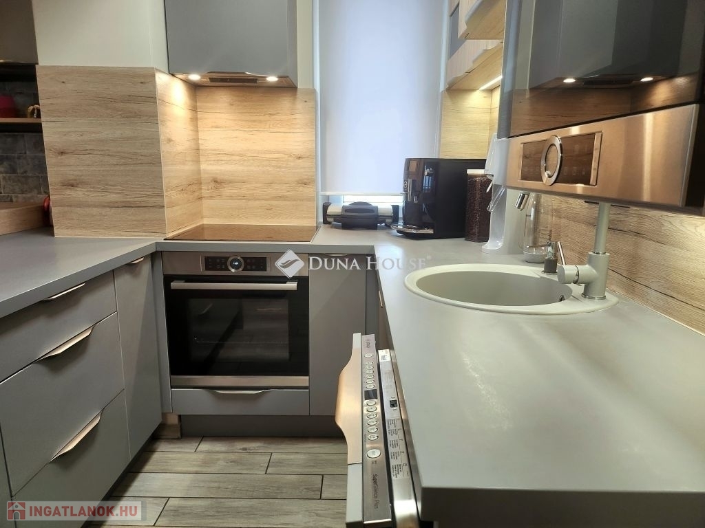 Eladó Pécs egyik legnépszerűbb részén, a Liget lakóparkban (Vadász utca) egy jó adottságokkal rendelkező, 2. emeleti, dupla teraszos lakás!Elhelyezkedés: A környék csendes, zöldövezeti, mégis jól megközelíthető.A közelben boltok, iskola, óvoda, tömegközlekedés is könnyen elérhető.A zárt lakópark területén, egy játszótér is található.Az ingatlan jellemzői:2008-ban épült, szigetelt tégla társasház 2. emeletén található.2022-ben teljes körűen felújították.Helyiségek: előtér, 2 szoba, amerikai konyhás nappali, fürdőszoba, wc, dupla terasz (fedett) melyről gyönyörű panoráma tárul elénk a Tv toronyra.Felszereltség:A minőségi gépek (bosch), tömörfa bútorok, a lakásban maradnak.Házközponti fűtés, a nappaliban egy hűtő-fűtő klíma is megtalálható.A lakás nyílászárói szigetelt műanyagok, redőnnyel és szúnyoghálóval ellátva.Az ingatlan rezsi költsége nagyon kedvező.1 db saját, felszíni parkolóhely.(3Mft)Igény szerint vásárolható hozzá egy garázs is!!