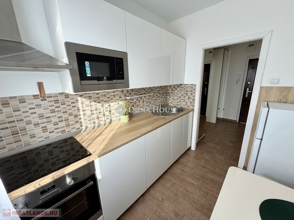 Eladó felújított, panorámás lakás Kertvárosban a Tildy Zoltán utcában! Eladásra kínálunk Pécs Kertvárosának kedvelt részén, a Tildy Zoltán utcában egy csodás kilátással rendelkező, szépen felújított, másfél szobás lakást a benne található bútorzattal.A lakás főbb jellemzői:- Felújított, megkímélt állapot, azonnal költözhető- Külön hálószoba, világos nappali és konyha- Electrolux konyhai gépekkel felszerelt modern, fehér magasfényű konyhabútor- Műanyag nyílászárók, amelyek jobb hő- és hangszigetelést biztosítanak- Panorámás kilátás a magas emeletnek köszönhetőenA lakás elosztása praktikus, ideális választás lehet fiatal pároknak, egyedülállóknak vagy befektetőknek is. A környék jól ellátott, a mindennapi élethez szükséges szolgáltatások könnyen elérhetők.Az ingatlan egy liftes társasház 8. emeletén helyezkedik el, így világos terek és nyugodt, panorámás környezet várja új tulajdonosát.Ez az ingatlan remek lehetőség mindazok számára, akik felújított, igényes otthont keresnek Kertvárosban, szép kilátással és liftes házban.Megtekintés miatt keressen bizalommal!