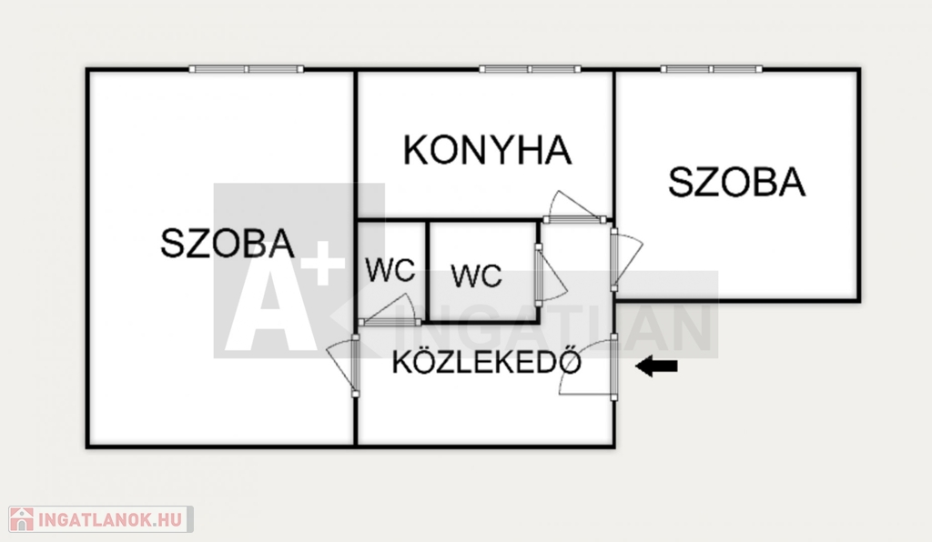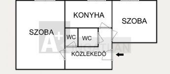 A lakás elrendezését tekintve : kettő külön nyíló szoba , dupla francia erkéllyel, konyha , szintén francia erkéllyel és külön nyíló fürdőszoba és wc..