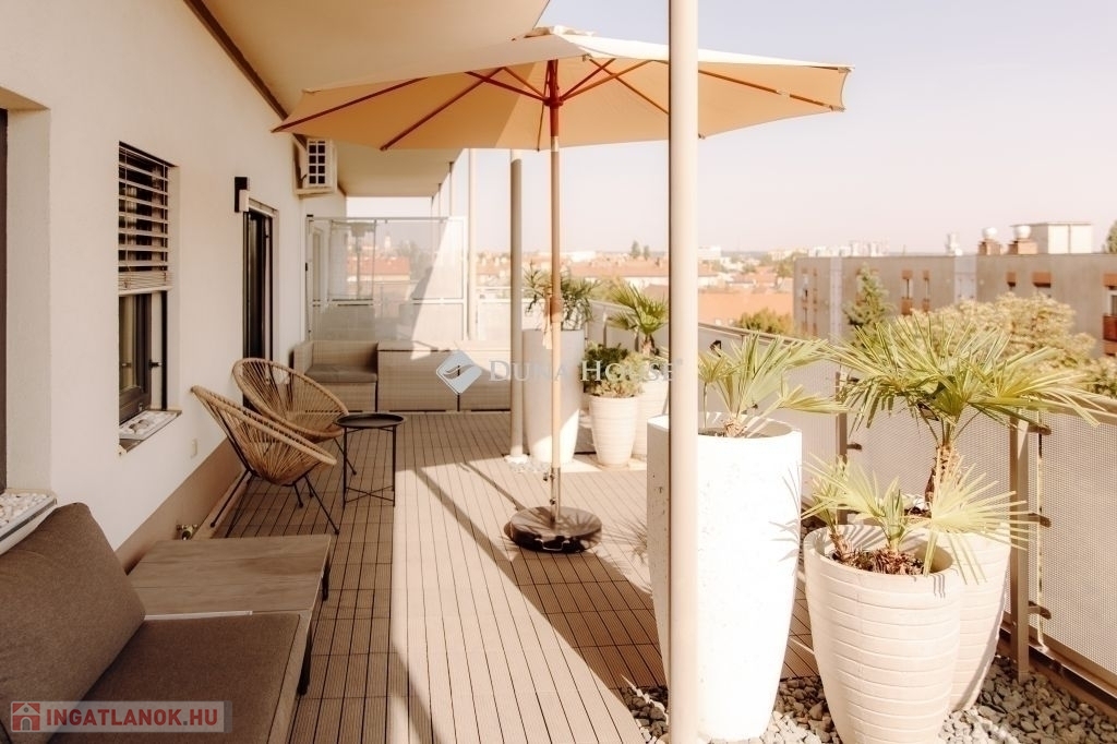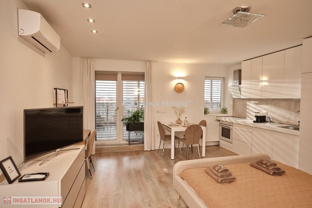 PRÉMIUM PENTHOUSE LAKÁS ELADÓ PÉCS BELVÁROSÁHOZ KÖZEL KÉT KÜLÖN LAKÁSSAL, TELJES BERENDEZÉSSEL, AZONNALI HOZAMMAL!Pécsett, a belvárostól mindössze pár perc sétára, a 2017-ben átadott Megyer Ház lakópark 4. emeletén kínálunk megvételre egy 70 m²-es, tehermentes penthouse lakást, amelyet két különálló lakássá alakítottak.Az ingatlanhoz nagyméretű fedett terasz is tartozik (30 m² és 20 m²), melyek mindkét nappaliból közvetlenül megközelíthetők.--KIEMELT ELŐNYÖK:Jelenleg mindkét lakás bérbe adva, teljes kihasználtsággalAzonnali, stabil és rendkívüli hozamA teljes berendezés a vételár részét képezi az ingatlan azonnal tovább üzemeltethetőKét külön bejáratú, önálló lakás maximális kihasználhatóság--Főbb jellemzők:Mindkét lakás: amerikai konyhás nappali + fürdőszoba WC-vel + teraszPrémium minőségű kivitelezés, letisztult designEmelt szintű, gépesített konyhákElektromos zsalúziaNagyteljesítményű klímák minden helyiségben (hűtés-fűtés)Távfűtés egyedi mérésselAlacsony fenntartási költség1 db utcai felszíni parkoló tartozik a lakáshoz2 további parkoló vásárolható-Lokáció:Belváros közeli, exkluzív környezetKiváló közlekedés minden iránybaVilágos, napfényes lakás egész nap--Befektetők figyelem!Az ingatlan jelenlegi működése és kialakítása révén azonnal bevételt termel, így ideális választás azok számára, akik kockázatmentes, kész befektetést keresnek Pécs egyik legkeresettebb lokációjában.További információért és megtekintésért várom hívását!