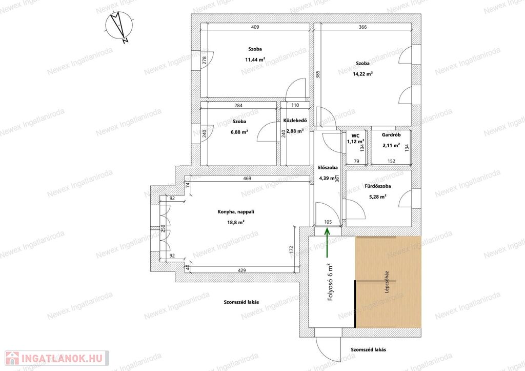 A lakásban két szoba és egy félszoba található, amelyeket a kelet–nyugati tájolásnak köszönhetően egész nap napfény jár át. A korszerű cirkó fűtés biztosítja a komfortos hőmérsékletet, míg a mindössze 7 500 Ft-os közös költség rendkívül kedvező fenntartást kínál.