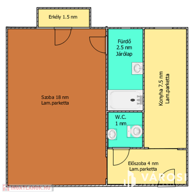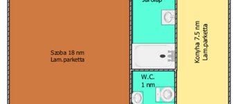 Az ingatlanban 1 szoba, konyha, fürdőszoba, külön nyíló W.C., előszoba, erkély található.