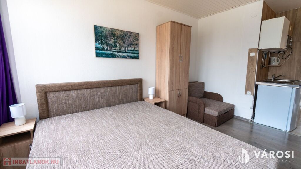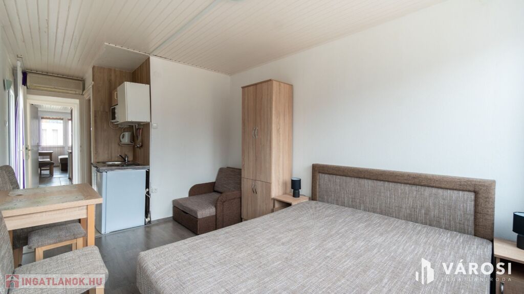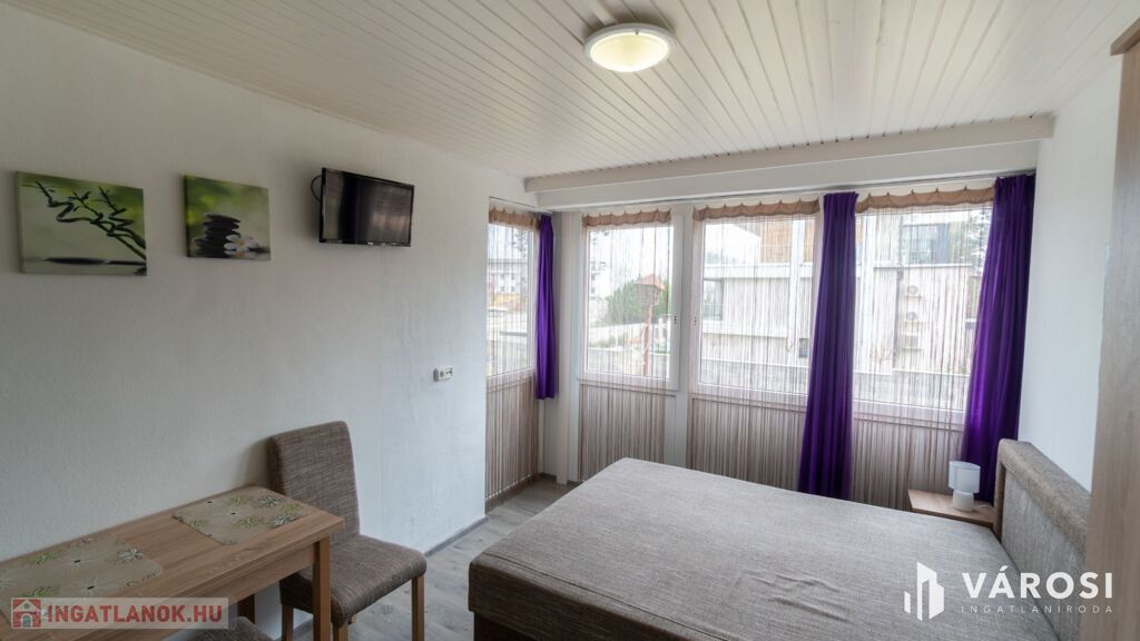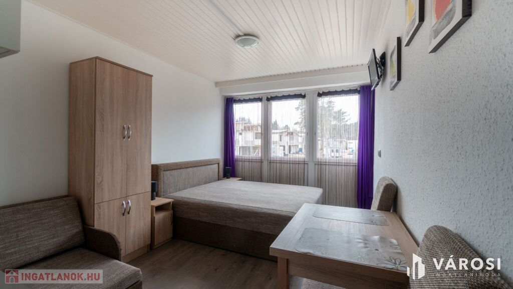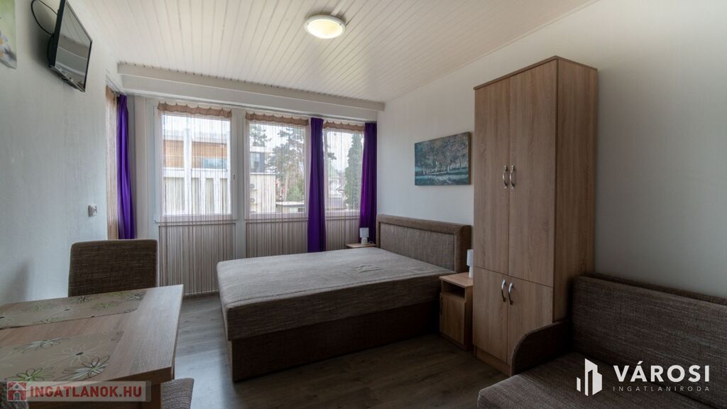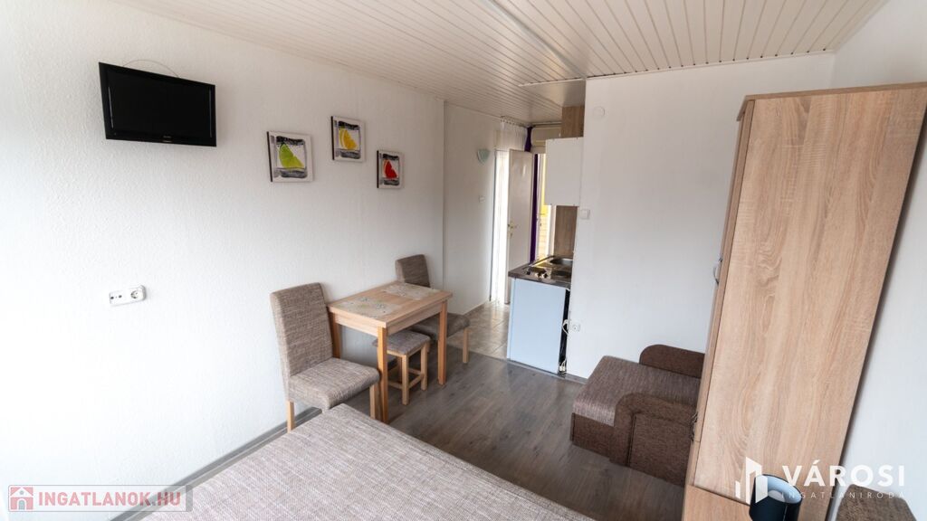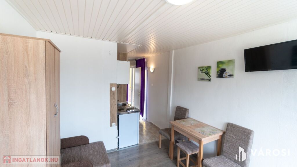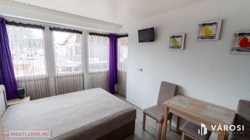 Un magnifique appartement de vacances avec vue panoramique sur le lac Balaton est à vendre au premier étage d'une résidence de vacances située dans le quartier de Golden Beach à Siófok. L'appartement se trouve à seulement 150 mètres de la célèbre plage de Golden Beach à Siófok. Cette partie de la plage est gratuite, vous permettant ainsi de profiter pleinement des activités offertes par le lac Balaton. Arrêts de bus et de train, commerces et restaurants sont accessibles en quelques minutes à pied. L'appartement a fait l'objet d'une rénovation complète en 2021, avec la pose d'un nouveau parquet stratifié et le remplacement de l'ensemble des équipements. D'une superficie totale de 51 m², dont 44 m² de surface habitable, il comprend 2 chambres, 1 hall d'entrée, 2 cuisines, 2 salles de bains et un balcon de 7 m² offrant un panorama exceptionnel sur le lac Balaton. Sa configuration actuelle permet de le diviser en deux appartements indépendants, le hall d'entrée spacieux desservant chacun un appartement avec sa propre cuisine et sa propre salle de bains. Ce chalet est entièrement meublé et prêt à vous accueillir. La climatisation vous garantit une température agréable même lors des journées les plus chaudes de l'été ! De plus, un local de rangement commun est à votre disposition. Le jardin paysager est entouré de magnifiques pins. Vous n'aurez aucun souci de stationnement grâce au parking privé situé dans la cour de chaque chalet. Actuellement loué en location saisonnière, le chalet affiche un taux d'occupation proche de 100 % durant l'été, ce qui en fait également un excellent investissement. N'hésitez plus ! Saisissez cette opportunité unique d'acquérir le chalet de vos rêves ! Visites possibles tous les jours de la semaine sur rendez-vous. Pour toute question ou pour prendre rendez-vous, appelez-nous dès aujourd'hui ! Ce serait dommage de laisser passer cette belle occasion ! (N'hésitez pas à nous appeler pour obtenir plus de photos et d'informations !)