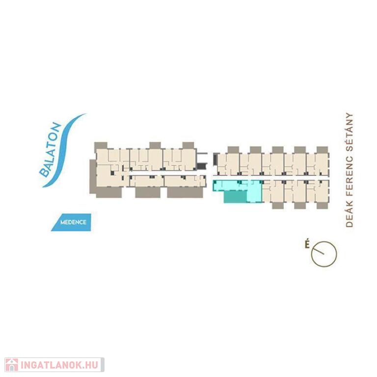 Siófok a déli part központja, 1 órányi autótávolságra Budapesttől. A parti sétányon elhelyezkedő lakás kiváló lokációval rendelkezik a közelben számtalan kikapcsolódási lehetősséggel még is távol a város zajától. 1 perc séta távolságra az Ezüstpart Yacht kikötő. A 69 lakásos projektben minden lakáshoz erkély tartozik, a fölszinten pedig saját kertek.