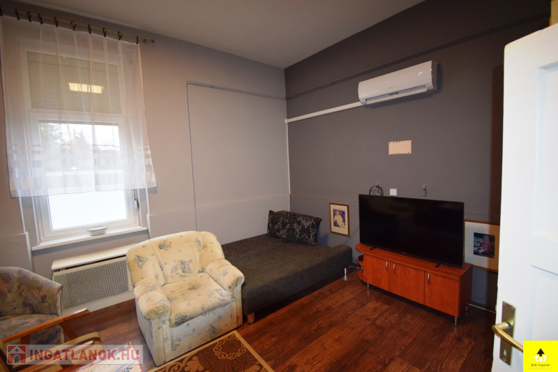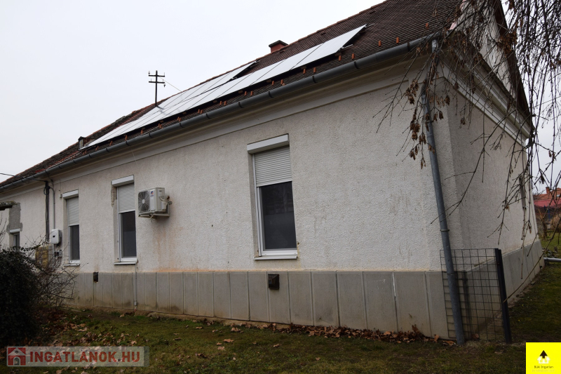 Sopronhorpácson 3 lakásos társasházban 89 m2-es, 4 szobás lakás eladó! Az ingatlan kiváló szerkezeti állapotban van, folyamatosan, gondosan karbantartott. A tető 10 éve lett felújítva új héjazatot kapott, pár évvel ezelőtt pedig napelem rendszer került rá, így a villanyszámla 0 Ft. Téglából épült a falak szárazak. A felújítás során cserélve lettek a nyílászárók, az elektromos, a víz és a szennyvízvezetékek is, valamint megújult a fürdőszoba. Melegvízellátását villanyboyler, fűtését gázkonvektorok biztosítják, de van fűtésre optimalizált klíma is a, mellyel a szaldós elszámolású napelem rendszernek köszönhetően ingyen fűthetünk. A lakáshoz tartozik egy kizárólagos használatú telekrész egy tároló, amely és egy nagy méretű szintén tégla falazatú „fatároló” is amely egyéb más célra pl. műhelyként, raktárként is hasznosítható. Amennyiben a későbbiekben a társasház mindhárom tulajdonosa úgy dönt, akkor a telekrészek 1 db önálló építési telekként funkcionálhat, beépíthető, vagy eladható. A ház alatt van pince közös használatú pince, az udvaron pedig egy közös gyűrűs, ásott kút, ha valaki öntözni szeretné a kertjét. A lakás fenntartási költsége, rezsije rendkívül alacsony.