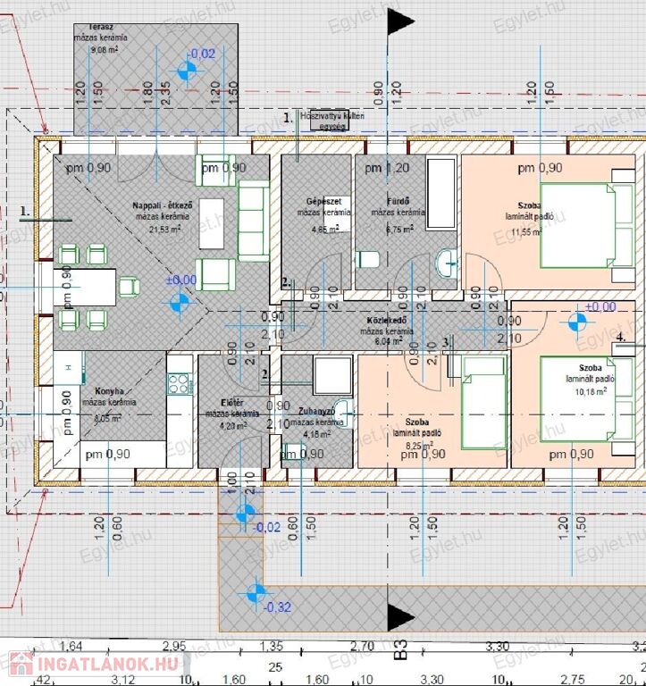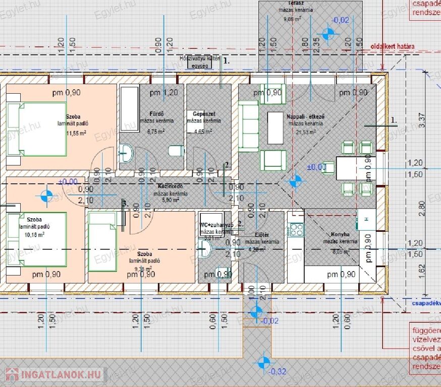 4. lakás: 85,20 m2 + terasz 9 m2 + 195 m2 saját használatú telek terület = 99.990.000 Ft