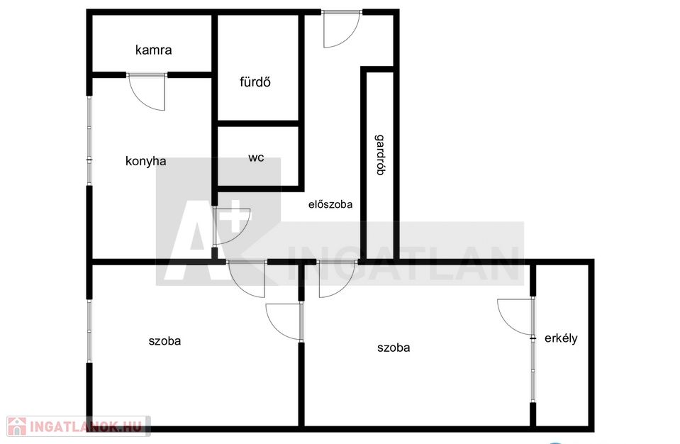Elrendezését tekintve : 2 külön és egybe is nyíló szoba , az egyik erkély kapcsolattal , szintén külön : fürdőszoba és wc , közeledő gardrób szekrényekkel és a konyha - kamrával.