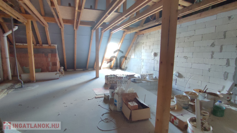 A házban a következő helyiségek találhatóak: a földszinten egy tágas, világos nappali, konyha, zuhanyzós fürdőszoba-mellékhelyiség. Az emeleten 3 élhető méretű szoba, erkély, fürdőszoba-mellékhelyiség, ami nagy beépített káddal rendelkezik. A 40m2 (bruttó 60m2) hasznos területű tetőtéri rész, további beépítési lehetőségek biztosít, de tárolási célra is használható.