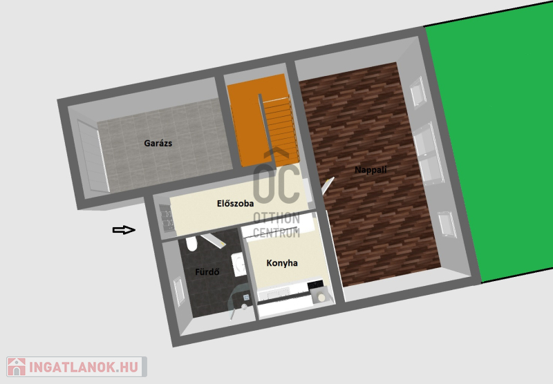 Székesfehérváron, a Belvároshoz közel, KERTKAPCSOLATOS, nagy TERASZOS, DNY-i tájolású Nappali + 3 szobás sorházi lakás eladó Garázzsal, udvari beállóval, saját kis telekkel!