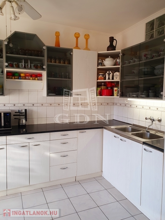 - garázs, beépített masszív polcrendszerrel, fűthető, szerelőaknás, a lakás második bejárási lehetősége.