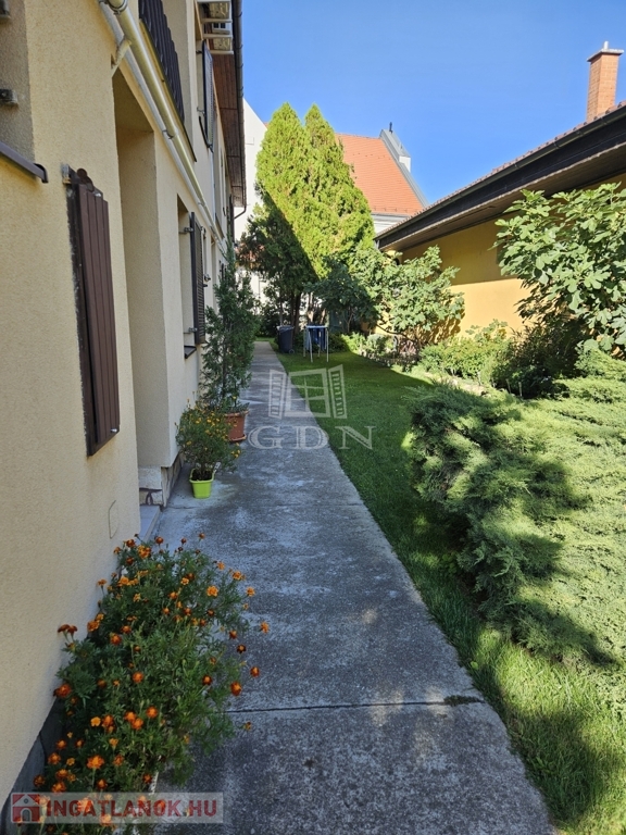 Az épület körbejárható. A lakások szépen gondozott saját előkerttel, közös oldalkerttel, fúrt kútról működő locsoló hálózattal, valamint több autó számára biztosított beállási lehetőséggel rendelkeznek.