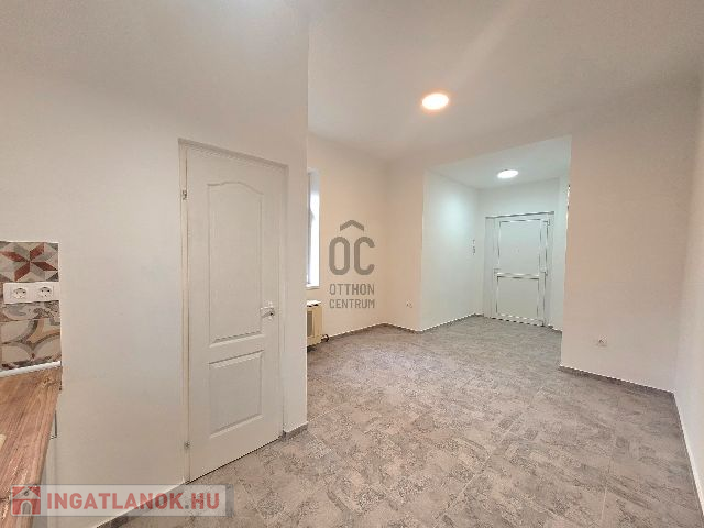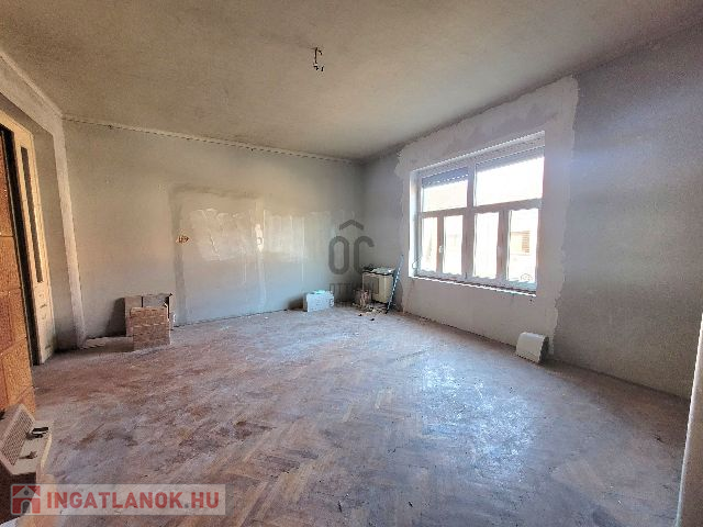 2. - iroda/raktár: Jelenleg egy közlekedőből és egy egy légtérből álló, felújítandó helyiség (ablakai már műanyag nyílászárókra lettek cserélve).