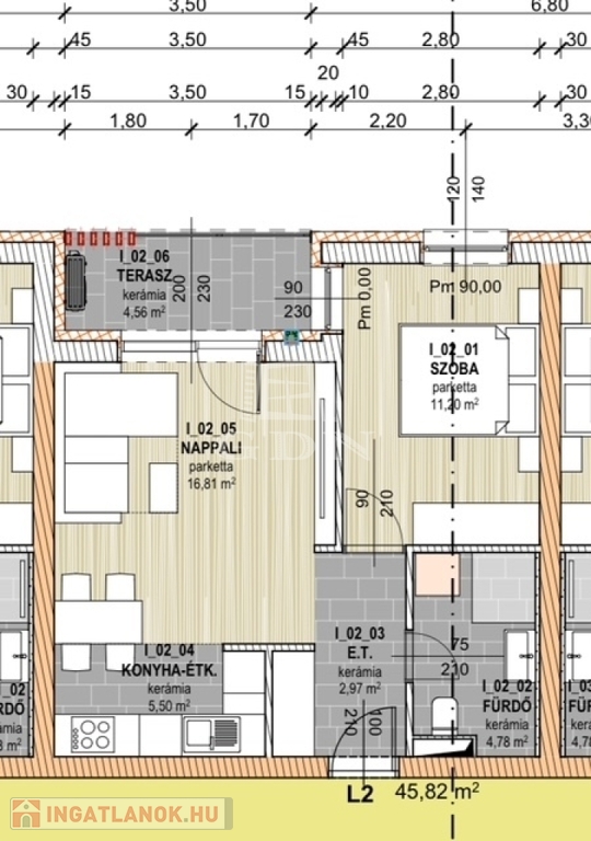 Az ingatlan alapterülete 41.26 m2, 4.56 m2 erkéllyel.