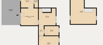 Alapterület: 60 m² földszint + 26 m² beépített tetőtér
