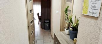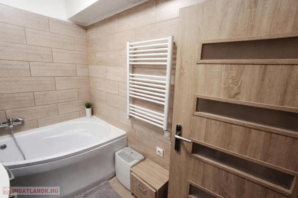 2025-ben a teljeskörű felújítás során a teljes víz- és villanyvezetékek cseréje megtörtént, a burkolatokat is kicserélték, így kellemes és igényes hangulatú a lakás. Az átalakításnak köszönhetően az amerikai-konyhás nappalin kívül még 2 hálószoba került kialakításra, a fürdőszobát is teljesen felújították: dupla mosdókagyló és kényelmes sarokkád került beépítésre. Az illemhely a fürdőtől külön helyiségben található, amelyben a kibővítésnek köszönhetően a mosókonyhaként is funkcionál. A lakásban egy tágas kamra is helyet kapott. Az elektromos hálózatot kibővítették, éjszakai áram is van és a H tarifa kiépítése is megkezdődött. A nappaliba hűtő-fűtő klíma került beépítésre, a lakásban ezen kívül még elektromos panelek gondoskodnak a fűtésről. A melegvizet új villanybojler biztosítja. Az ablakok 3 rétegű műanyag nyílászárok, redőnnyel és szúnyoghálóval felszereltek. A nappaliba tolóajtós teraszajtó és elektromos redőny került beépítésre. A lakás 10 cm vastag külső szigetelést kapott.
