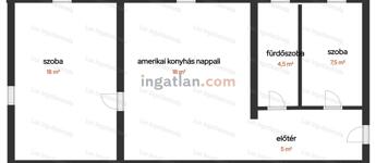 Amerikai konyhás nappali , két külön nyíló szoba, fürdő WC-vel és egy előszoba.