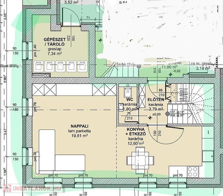 Konyhabútor nem tartozik az ingatlanhoz, egyedi konyhabútorok elkészítését a kivitelező vállalja.