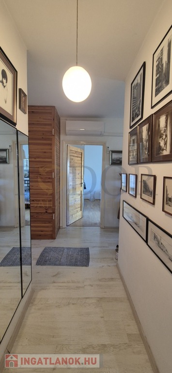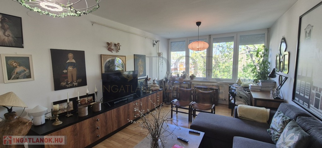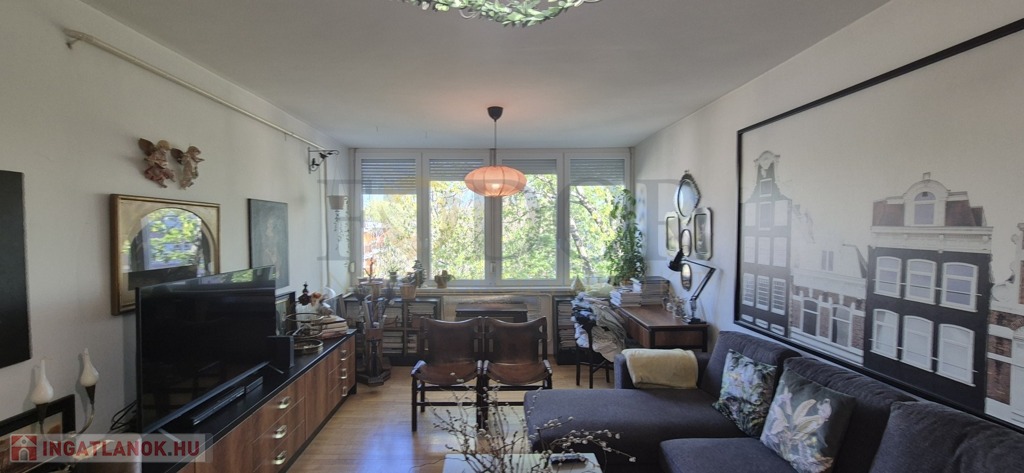 A lakás egyik legnagyobb értéke a világosság és a jól élhető térérzet – a keleti oldalon szinte végig ablakok biztosítják a természetes fényt.