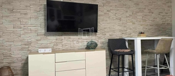 Elegáns kőburkolat került a falakra, egyedi, stílusos megjelenés