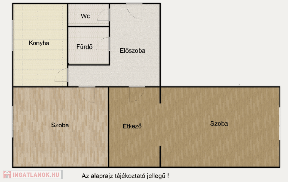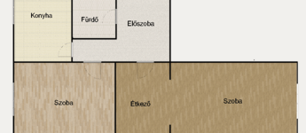 Elosztása révén 2 nagy méretű szoba és hall, amely jelenleg étkezőként funkcionál valamint a konyha és külön fürdő - wc kialakítással minden igényt kielégít az 53 nm-en.