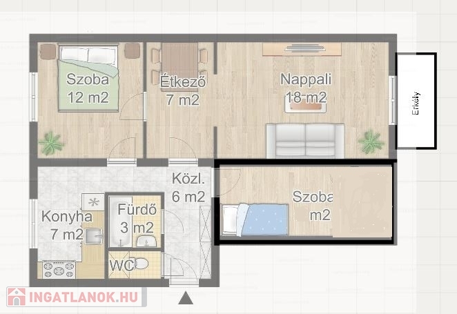 - K-Nyi-i tájolásának köszönhetően kiváló a benapozottsága, világos, hangulatos lakás