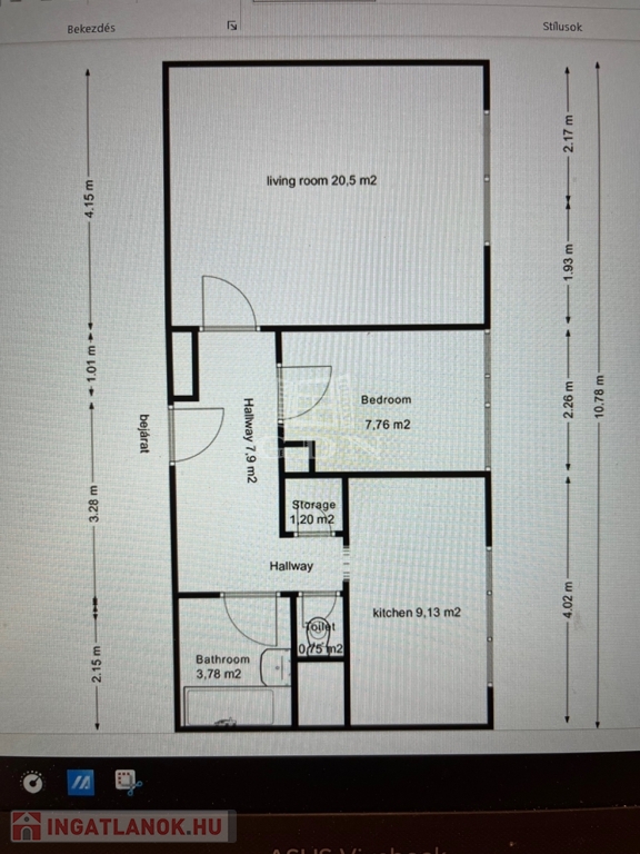 Az ingatlan világos, kelet–nyugati tájolású, elosztása kifejezetten kedvező: