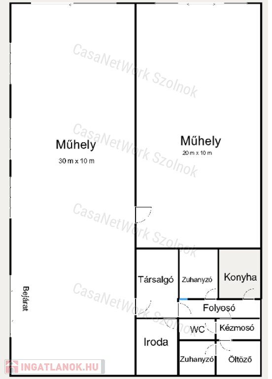 A szolnoki CasaNetWork Ingatlaniroda bérlésre kínál egy 600 m2 alapterületű ipari csarnokot