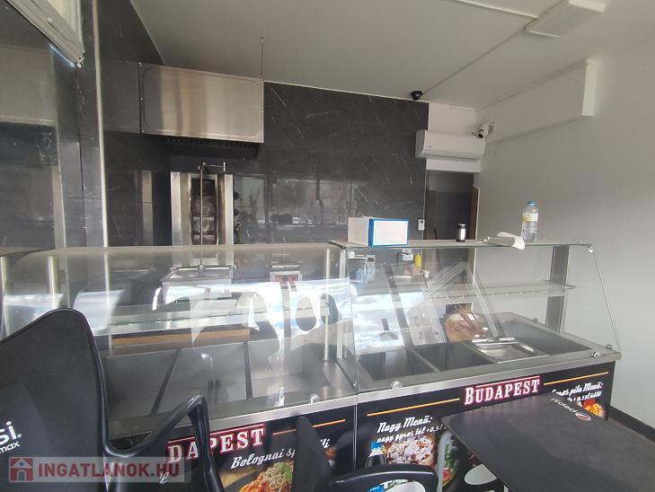 Rendelkezésre áll egy 22 nm-es üzletrész, mely kiszolgálótérből, konyhából és mellékhelyiségbő áll, valamint egy kb. 12 nm-es, különnyíló üzletrész, ahol a víz és villanyhálózat szintén be van vezetve. Ez a helyiség akár külön is kiadható.