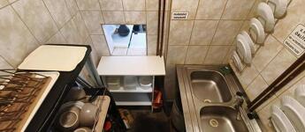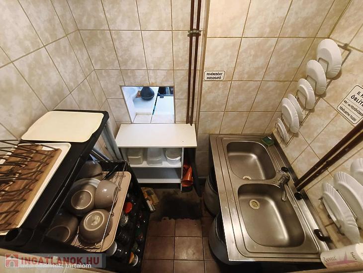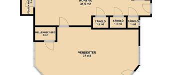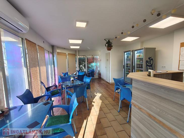 vendég tér, 4 tároló helyiség, konyha, vendég mosdó, személyzeti zuhanyzó + mellékhelyiség.