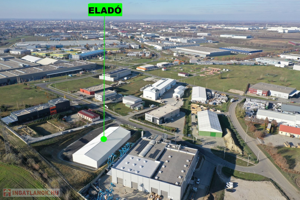 A Győri Nemzetközi Ipari Park kialakult, beépített részén, 4.505 m2-es telken, 2020-as építésű, 985 m2-es, 4,8m-es nettó belmagasságú, szigetelt, fűtetlen raktár csarnok, iroda és szociális konténerrel, 1.500 m2-es burkolt kültéri tároló felülettel. 3*80 Amperrel eladó.