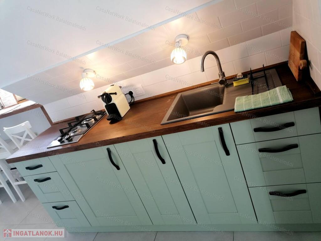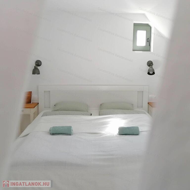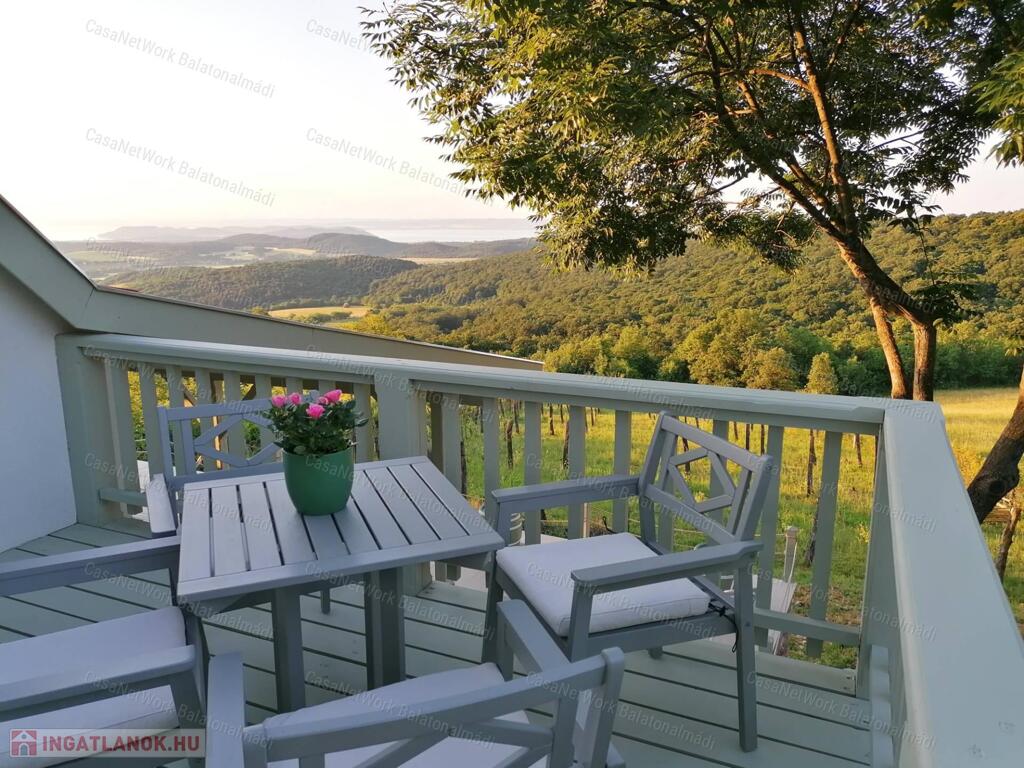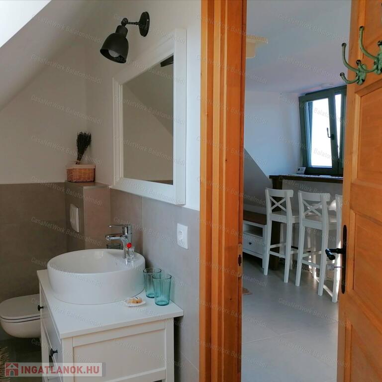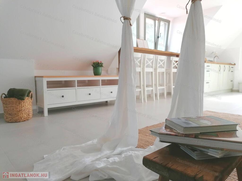 A tetőtérben került kialakításra egy külön bejáratú stúdió apartman jellegű vendégszállás, nagy háló-nappalival, teakonyhával, egy fürdőszobával és egy 15 m2-es terasszal, ahonnan szintén gyönyörű a kilátás a környező dombokra és a Balatonra.