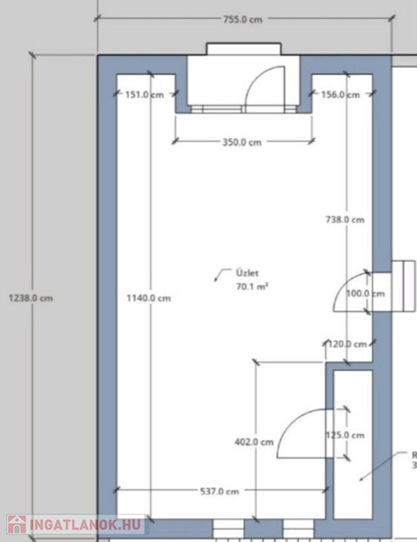 Az üzlethelyiség 75 m2, 2 bejárattal rendelkezik, ebből az egyik utcafronti.