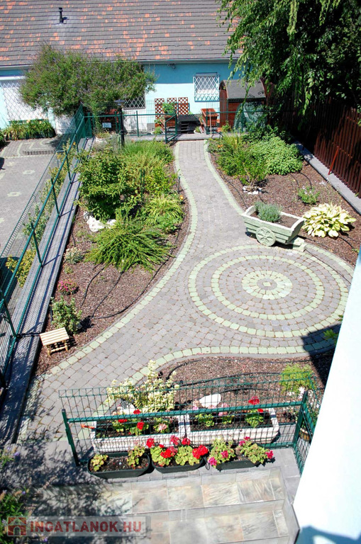 A tágas, nagy részben térkövezett udvaron összesen 6 autó részére biztosít parkolást. További parkolás az utcán is lehetséges.