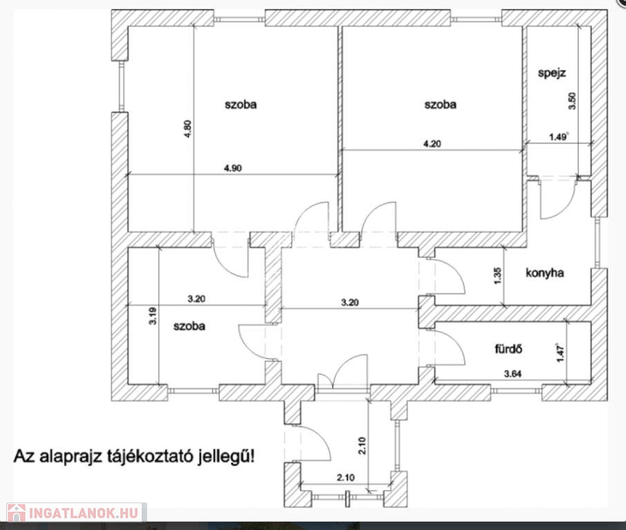 Az ingatlan két nagyméretű szobával és egy kisebb szobával rendelkezik, az egyik nagy szobában cserépkályha is található.