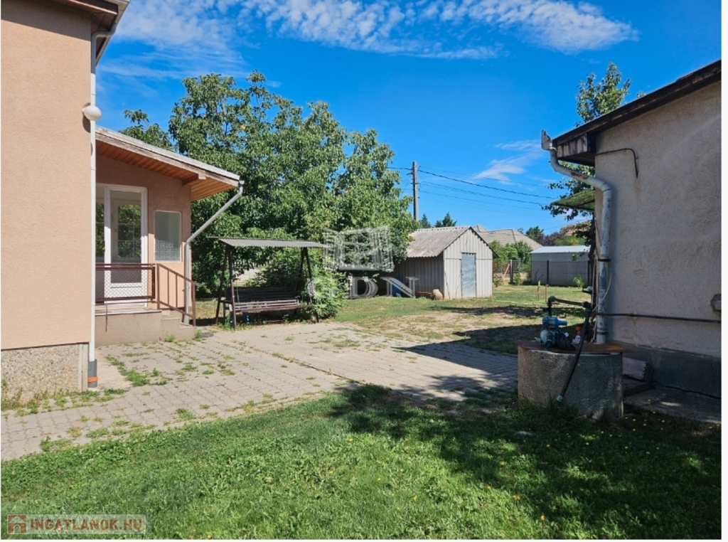 Az udvaron található egy szabadon álló garázs, egy ásott kút, melyről az öntöző rendszer működik.