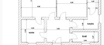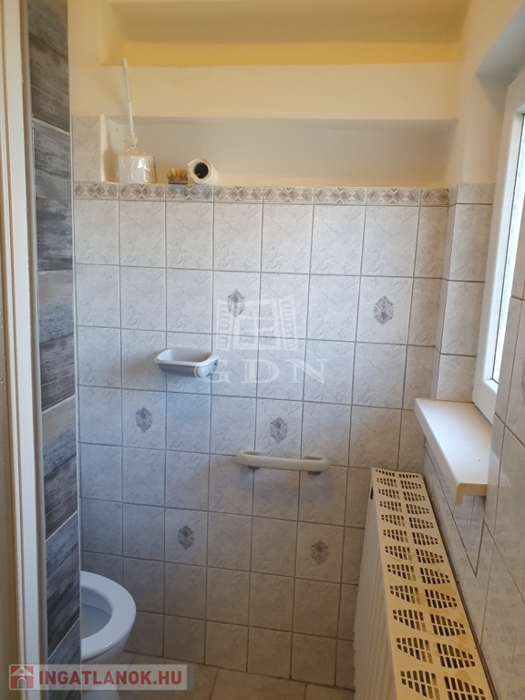 Tágas előtérből nyílik a zuhanyzós fürdőszoba WC-vel, a konyhából (konyhabútor+gáztüzhely) pedig egy kamra, ahonnan a padlástérbe van feljárási lehetőség.