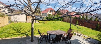 612 m²-es, parkosított, rendezett udvar automata öntözőrendszerrel