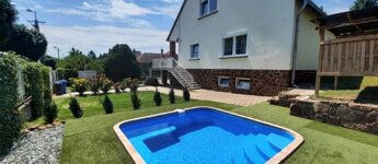 A 533 m2-es rendezett. ápolt kertben található egy újépítésű fűthető medence.