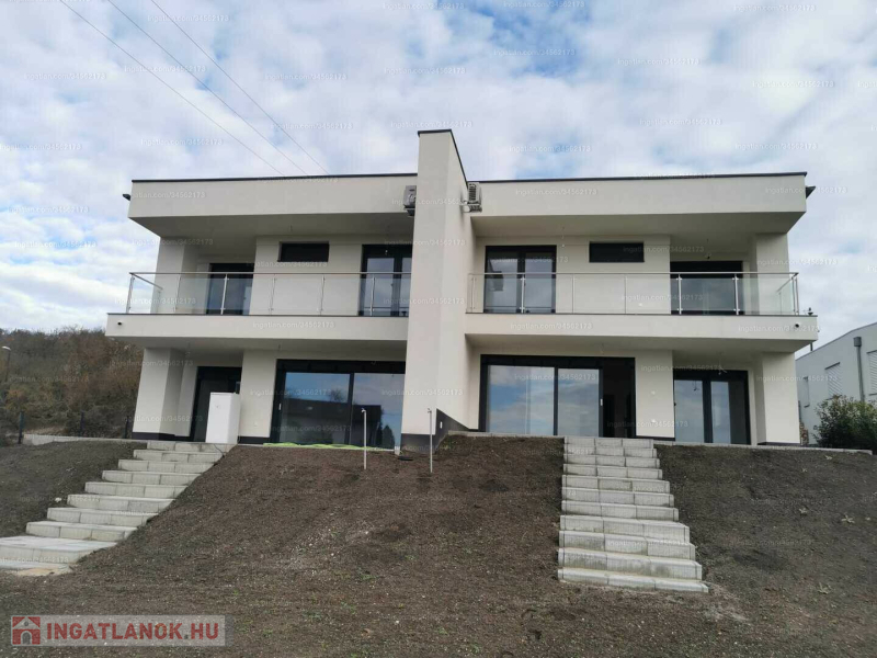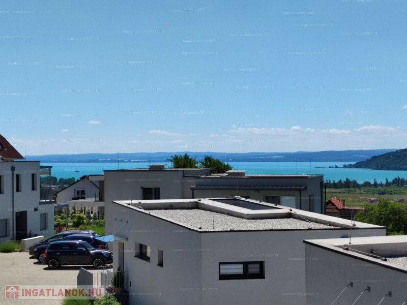 Csodás balatoni panorámával rendelkező, dél-nyugati tájolású, újépítésű ikerház mindkét fele eladóvá vált Füreden, csendes, rendezett környezetben.