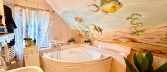 A belső kialakítás is minden igényt kielégítő elgondolások alapján lett kivitelezve, amelybe bele foglaltatik az is, hogy a tetőtéri szobákhoz saját fürdőszoba és illemhelyiség tartozik.