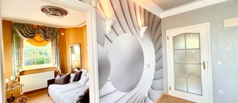 Az ingatlan lakótere igazán egyedi megjelenéssel rendelkezik, amely egy impozáns életvitelt biztosít tulajdonosa számára.