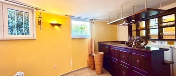Az épület alatti rész úgy lett kialakítva, hogy két gépjárművel is be lehessen állni, továbbá kivitelezésre került egy nyári konyha, BÁR helyiség és egy iroda helyiség, nem utolsó sorban egy szoba és egy fürdőszoba illemhelyiséggel.